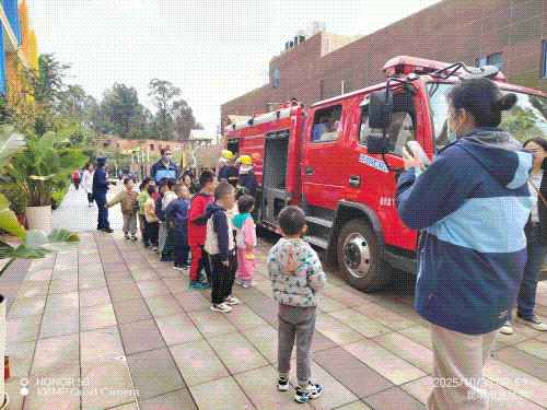 此外,队员们还向孩子们展示了消防车辆及随车器材,通过生动讲解激发幼儿学习兴趣。小朋友们踊跃参与,积极互动,将活动氛围推向高潮。